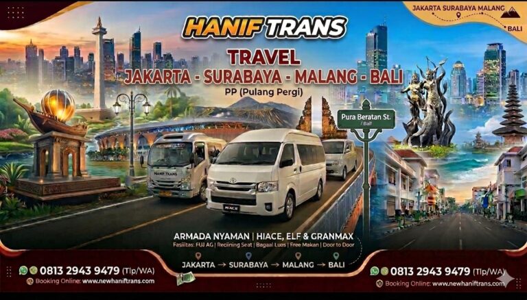 Hanif Trans merupakan perusahaan yang bergerak di bidang jasa travel & tour rute Jakarta tujuan Surabaya,Malang & Bli atau sebaliknya. Kami hadir sebagai solusi perjalanan aman dan nyaman dengan layanan door to door serta opsi reguler maupun charter, sesuai kebutuhan pelanggan. Anda akan dilayani oleh pengemudi berpengalaman dengan pilihan armada lengkap dan modern.