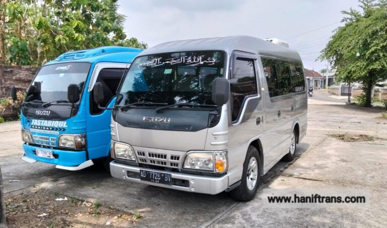 Seluruh armada kami dirawat secara berkala demi menjaga performa dan keselamatan selama perjalanan. Dengan dukungan layanan pelanggan yang responsif, Anda bisa melakukan pemesanan langsung melalui WhatsApp admin tanpa harus datang ke kantor. Hanif Trans selalu siap memberikan pengalaman perjalanan yang praktis, aman, dan terpercaya bagi setiap penumpang.